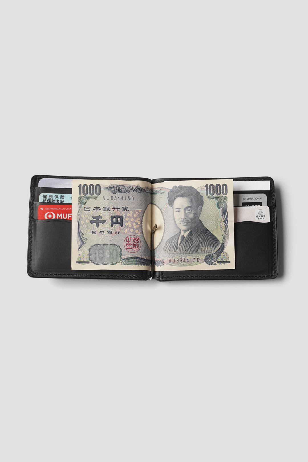 Tomo&Co オリジナルのプルタブジップファスナーを使用したマネークリップ型ウォレット。