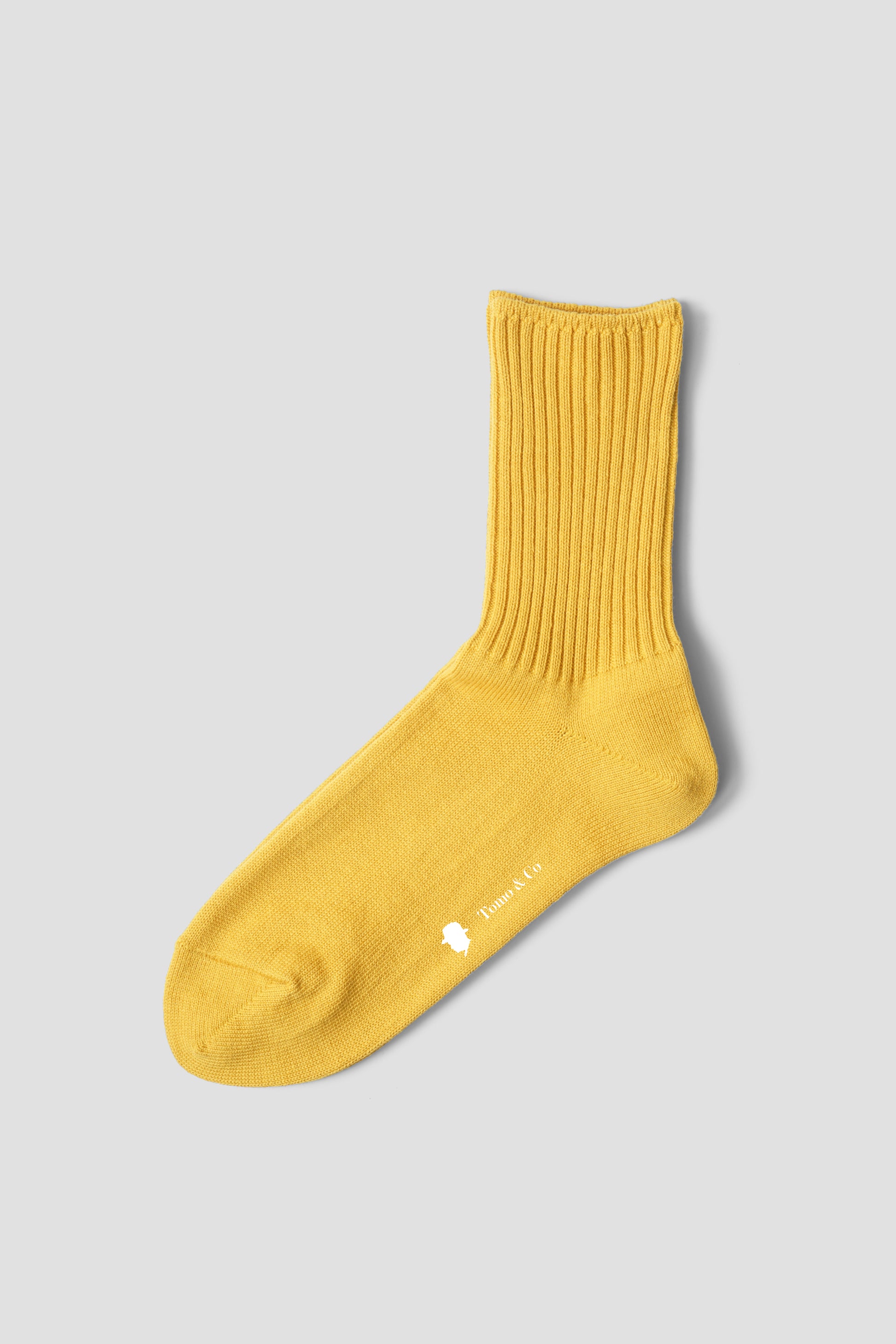 オーガニックコットンの20双糸を100針以上リブ編みにて作成した靴下。